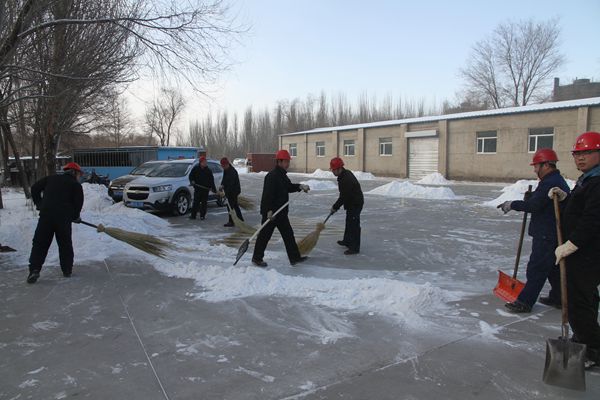 14日一大早,公司機關及各基層廠隊干部職工都積極投身到掃雪行動中。雖然室外氣溫很低,許多人的手和臉也被凍得通紅,然而,這一切絲毫沒有影響大家的勞動熱情和效率。職工們團結協(xié)作、井然有序,揮舞著鐵鍬和笤帚,鏟的鏟、掃的掃,干得熱火朝天,形成了一道美麗的風景線!經過大家一個多小時的努力,各廠區(qū)出入口、主干道等處積雪被全部鏟除、掃凈,確保了行車道路通暢,為公司安全生產和職工出行掃除了障礙。