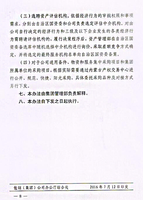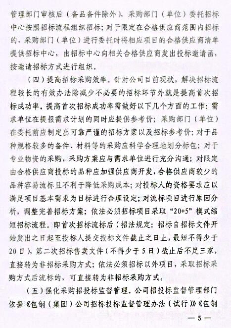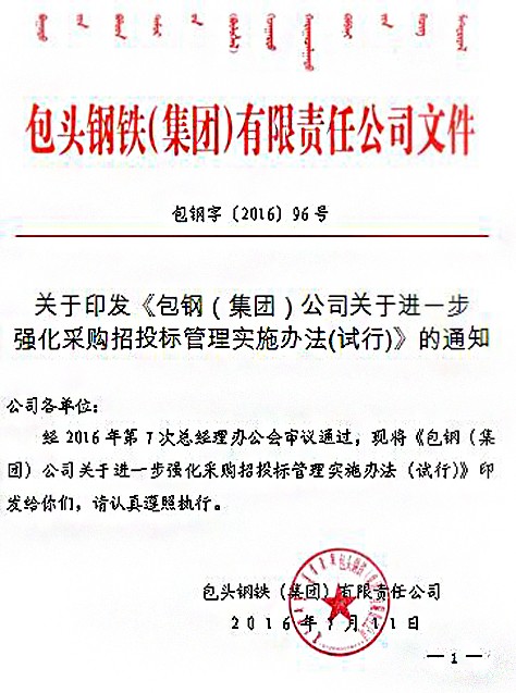 關(guān)于印發(fā)《包鋼(集團)公司關(guān)于進一步強化采購招投標(biāo)管理實施辦法(試行)》的通知
