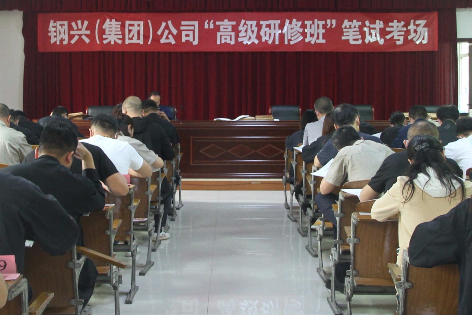 5月22日下午,集團(tuán)公司組織學(xué)員進(jìn)行“研修班”入學(xué)測試的筆試考核,本次筆試由南開大學(xué)的老師命題,從前期的策劃、試題準(zhǔn)備、考場的布置到過程控制,都進(jìn)行了嚴(yán)密的部署。集團(tuán)公司十分重視此次考試選拔工作,董事長、總經(jīng)理董繼鋼,黨委書記王建云、監(jiān)事會主席、工會主席高建華蒞臨考場,視察現(xiàn)場考試情況,實(shí)地察看了考試環(huán)境和學(xué)員的答題情況,應(yīng)試學(xué)員十分重視此次考試,考前圍繞《包頭市鋼興實(shí)業(yè)(集團(tuán))有限公司戰(zhàn)略規(guī)劃與治理結(jié)構(gòu)設(shè)計(jì)研究》、《集團(tuán)公司第二屆股東代表會議董事會工作報告》和《包頭市鋼興實(shí)業(yè)(集團(tuán))有限公司企業(yè)文化建設(shè)實(shí)施方案》認(rèn)真?zhèn)淇迹荚囍袪幏謯Z秒,奮筆疾書。為保證考試的公平、公正、透明,考試結(jié)束后立即將考卷密封后交由南開大學(xué)的老師進(jìn)行批改,嚴(yán)把考試中每一個環(huán)節(jié),嚴(yán)控每一個細(xì)節(jié)。