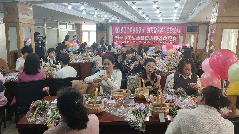 活動(dòng)中,邀請(qǐng)了包頭市陳欣心理學(xué)校的老師針對(duì)現(xiàn)代女性在工作、生活中如何進(jìn)行自我調(diào)節(jié)和自我放松,從而促進(jìn)了女職工的身心健康。隨后,花藝?yán)蠋煆倪x花、裁剪、顏色搭配、造型等多方面講解插花技巧。大家將修剪好的花束插入花籃中,一籃籃春意盎然、獨(dú)具匠心的插花作品應(yīng)運(yùn)而生。通過(guò)學(xué)習(xí)插花,既陶冶了情操、提高了審美,又增強(qiáng)了女職工的幸福感。